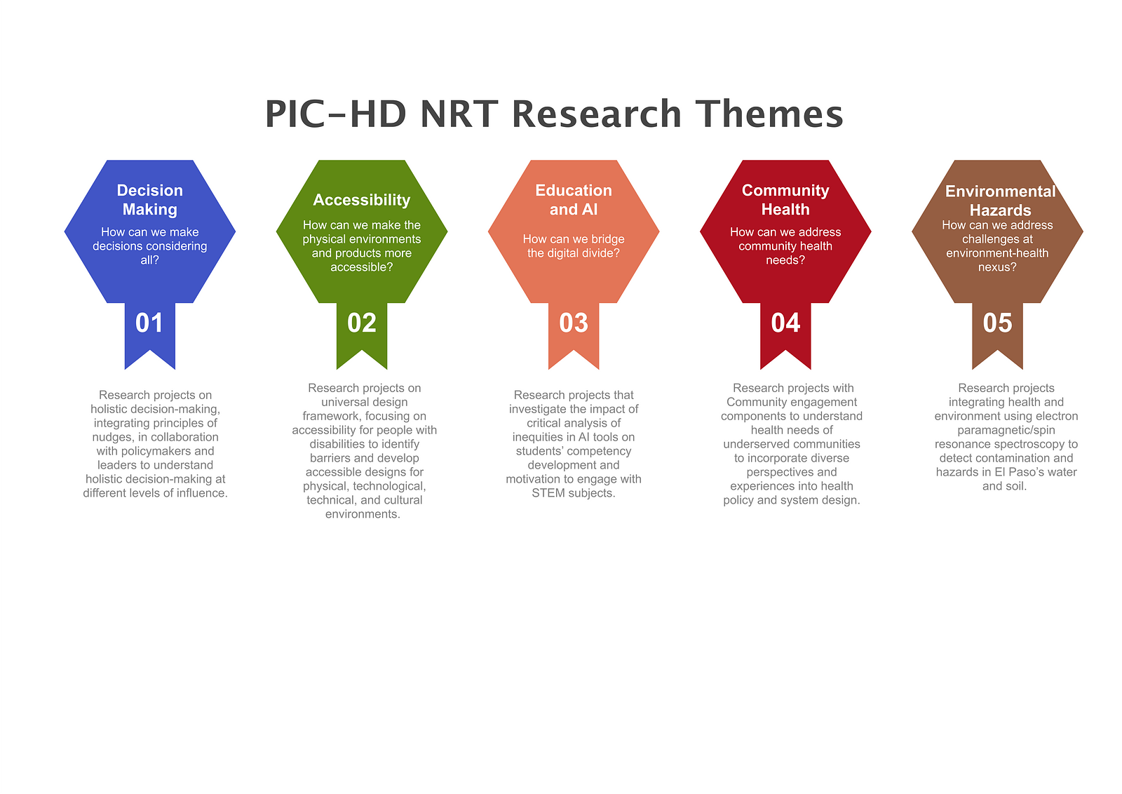 The NRT research efforts are anchored to sustainable development goals of the UN and will focus on infusing holistic design for policies, products, processes, places, and pedagogy for serving people. Research efforts will converge disciplines, systematically study holistic design in different phasesof design processes, and address inequities in different communities of need including low-resource, vulnerable communities.